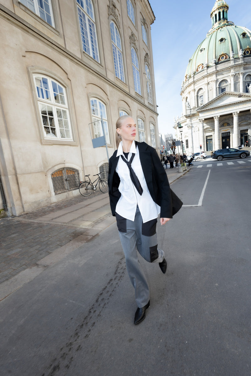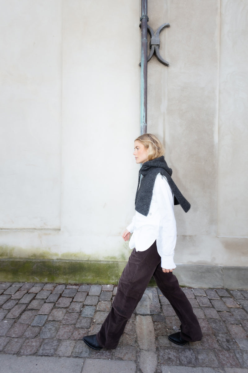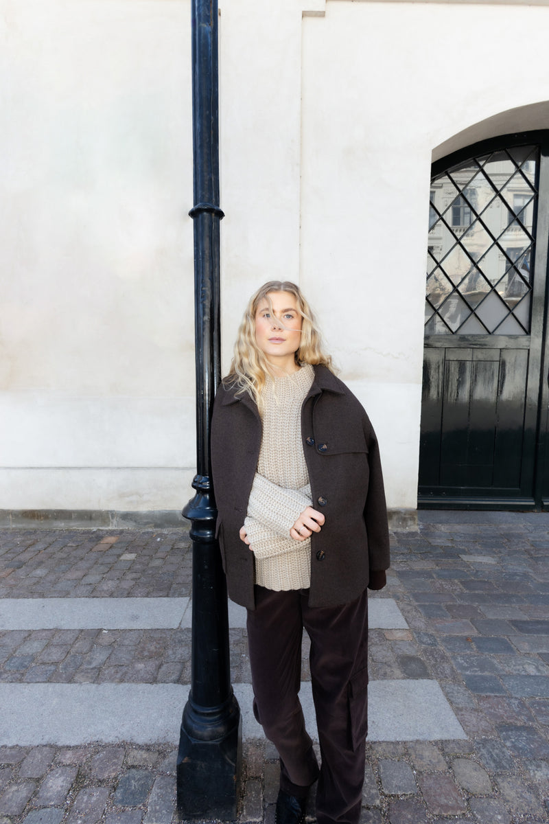 “I would describe this collection as a versatile mix between the casual & sporty, the classy, and some rock’n roll combined with the ladylike. From men’s inspired corduroy, chunky knits, oversized suits, and rough rivets. Embracing all little moments in our modern everyday life. Based on a timeless color palette, ready to be loved for years ahead.”
