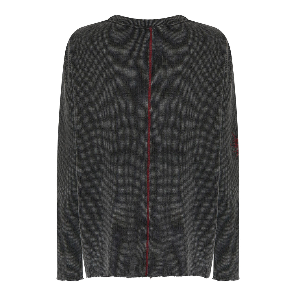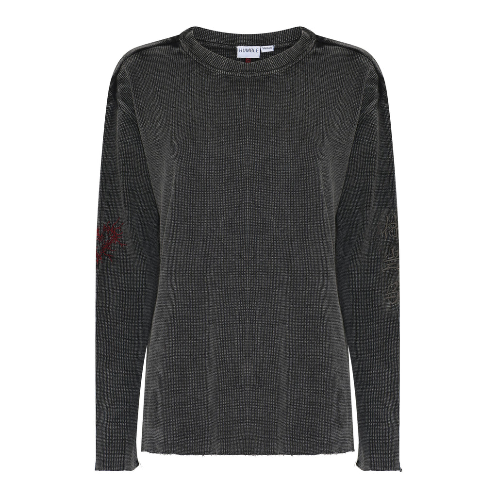 A cool waffle tee with embroidery details and raw edges <3